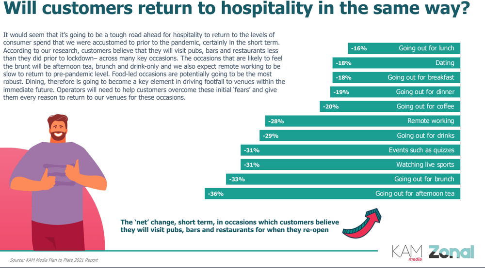- Booking is now key with 1-in-6 customers expecting and wanting to book before they go out. Crucially one in three said ‘difficulty making a reservation was one of the key reasons they might decide to stay at home.