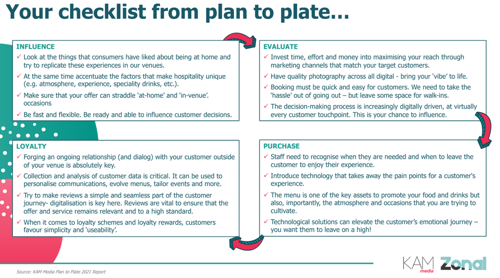 Joint research by on-trade consultants, KAM Media, and Zonal, the hospitality technology provider, of just over 1,000 consumers reveals just how important planning and preparing for a trip to the on-trade now is compared to before the Covid-19 pandemic. Its report Plan to Plate looks at each stage of a consumer’s journey from deciding to go out, researching where to go when they do and then what the experience is like when they are from ordering to paying, to deciding if they want to return.