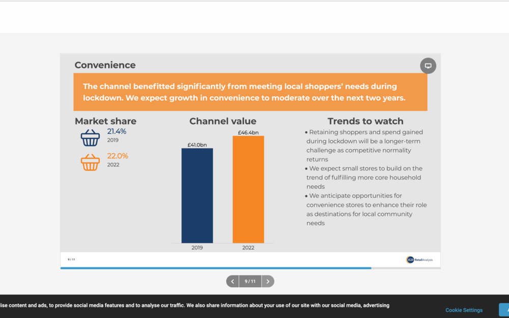 The big challenge now for the c-store sector is holding on to that new business, and the IGD is predicting a slowdown in growth in 2021 and 2022.
