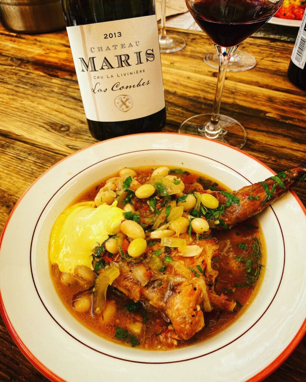 The Grand Café Occitan, has been open since the 10thof July with chef Justin previously at iconic London eaterie St. John, for whose own label wines Benjamin Darnault is the winemaker. There’s a Fergus Henderson vibe to the food as well as we eat simple fresh salads, ox tongue, beetroot, fish and rabbit. A selection of Château Maris’s exciting, terroir-driven wines works so well with special mention going to a 2013 bottle of Las Combes, made from that egg-fermented Grenache – secondary notes of fig and black olive, mixed with dried herbs like thyme and broom.