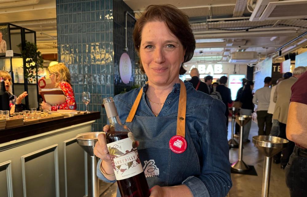 Estelle Roumage proudly shows her Clairet wine