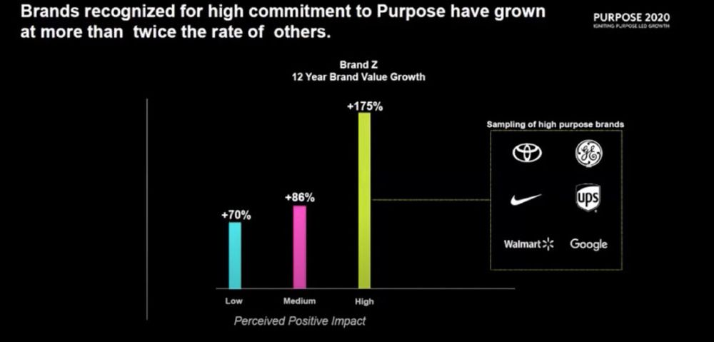 Done well and it can have a real impact on the business’ bottom line. She points to Kantar research that shows brands that are recognised for their high commitment to social issues (a ‘purpose’) have grown more than twice the rate of others. Look at what the likes of UPS, Google, WalMart, Nike have done.
