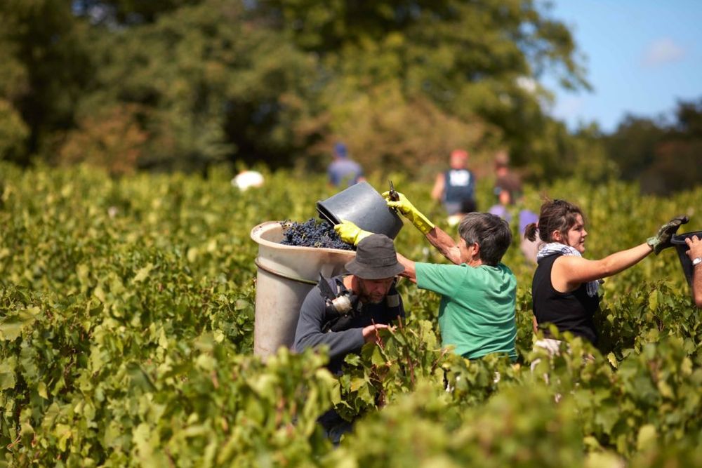 Grape pickers at Maison Boisset Beaujolais one of the many vineyards Boisset owns across France