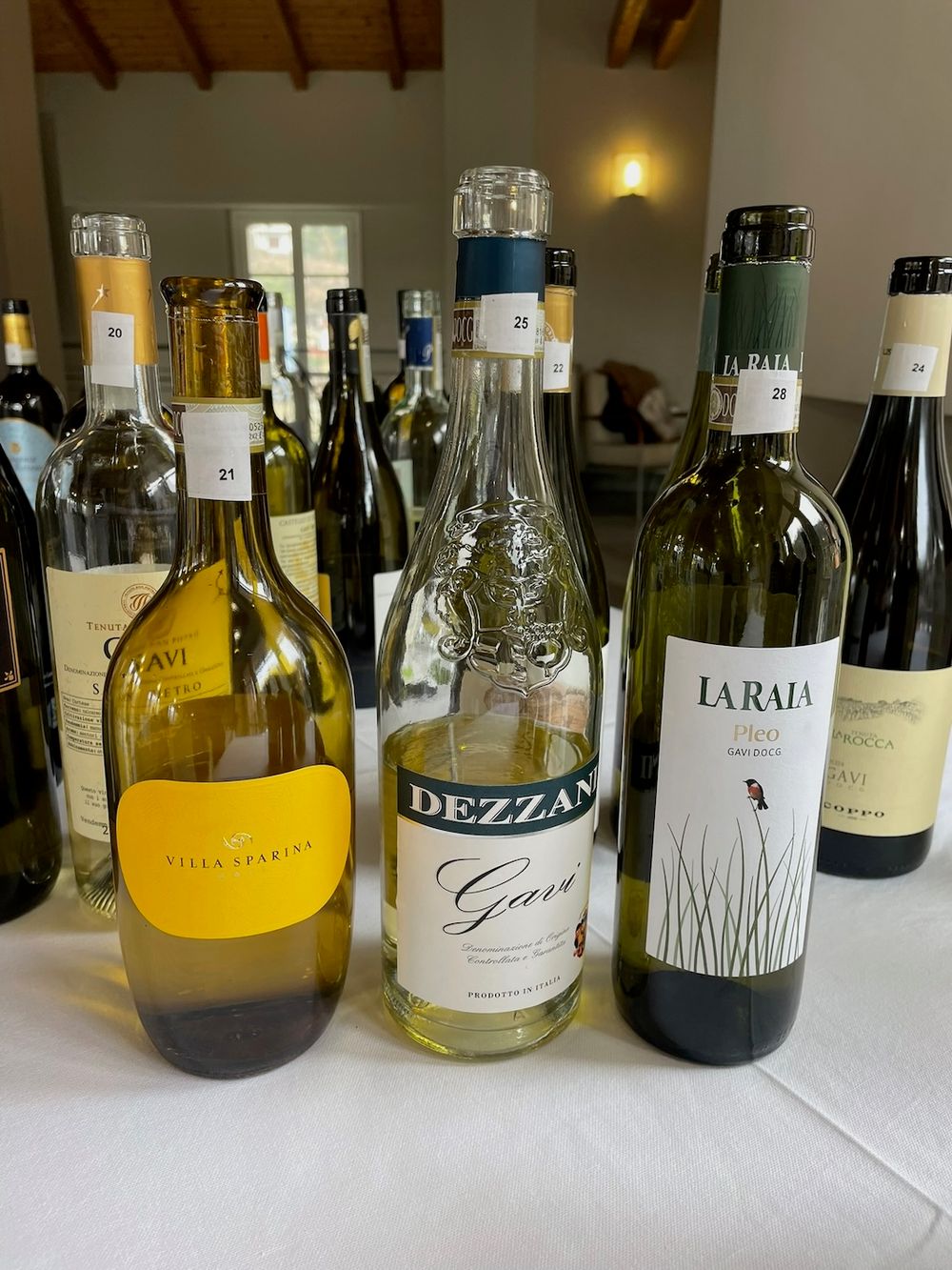 Our first stop is a tasting of 37 wines. As our host explains, though diverse, this bunch mainly tells the same story: fresh, crisp, savoury and refreshing. Among the stills, there’s the Dezzani SRL Gavi 2024 (ABV 12.5%, retail £16.77 a bottle) which has an attractive Chablis-like style and the La Bollina Gavi DOCG 2924 (ABV 12.5%) with white stony fruit and a richer, warmer touch of jaminess.