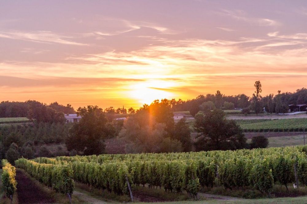 The perfect sunset breaks out over the vineyard