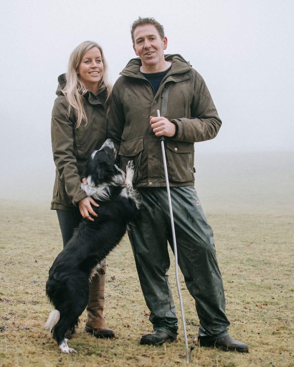 The Spittles with the crossbreed reared specifically for the vodka (and a bit of product placement!)