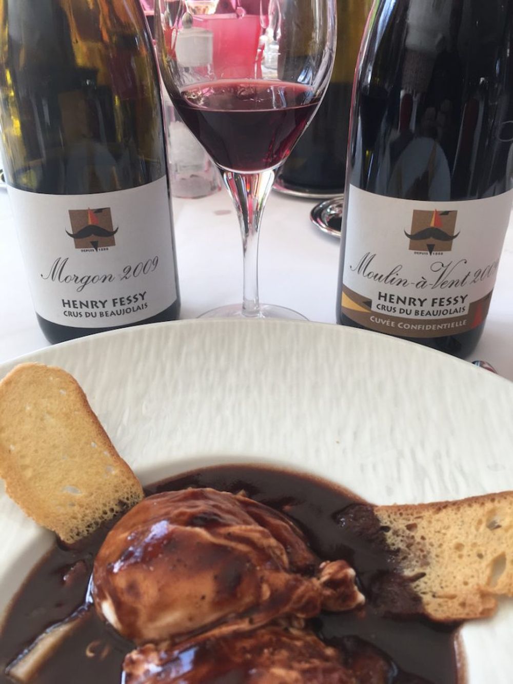 Beaujolais ages very well indeed. 2009 and 2010 were first class vintages and it was good to try the Morgon and Moulin-à-Vent 2009 again. Both had developed secondary characteristics, were still beautifully fresh and had a great presence in the mouth. A perfect match for Oeufs en Meurette – eggs in a red wine sauce.