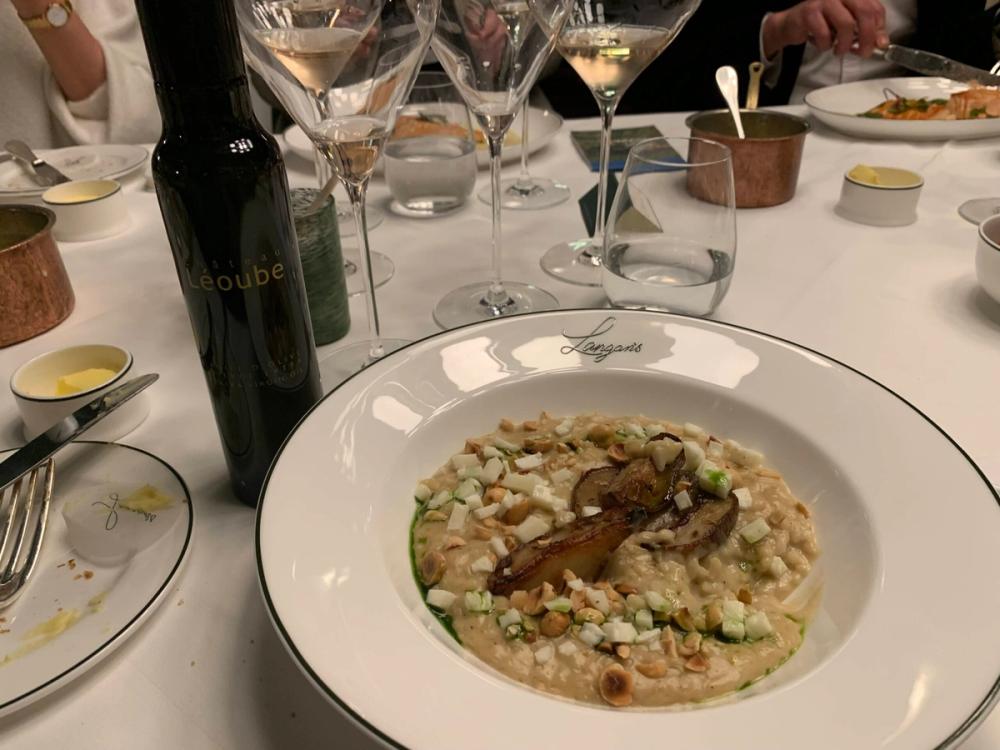 It’s time for our main course (with a choice of Scottish salmon, veal chop or Jerusalem artichoke risotto) and the move into the highest of high-end rosés. The Léoube Rosé Singulier (14% AVB) is a combination of Grenache, Cinsault, Cabernet Sauvignon, comes only in magnums and costs an immodest £199 a bottle. Only 800 bottles of this late-bottled rosé have been released.