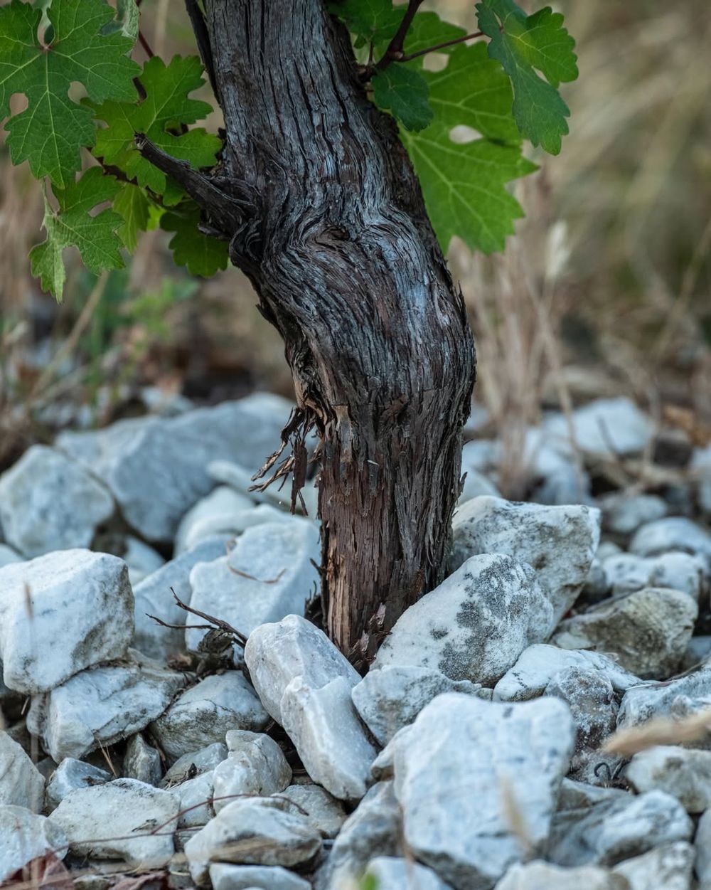 Each vine is surrounded by white stones as an indirect way of coping with climate change
